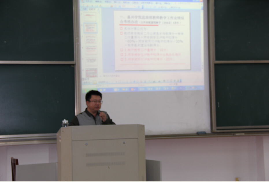 20141016下午,我部组织召开了教学工作会议,包括本部、红船研究中心以及各二级学院兼职教师共40多位思政教师参加了本次会议。在会上,彭冰冰副主任首先向各位老师详细介绍了思政部教师教学综合业绩考核办法。他指出,教学综合业绩的考核主要与以下四个方面有关:一是切实提高课堂教学质量;二是积极参与教学改革与研究;三是预防避免教学事故;四是备齐各类教学基本文件。随后,彭冰冰副主任向各位新老师传达了《思政课实践教学实施办法和教学大纲》,他强调要做好学生撰写调研报告的指导工作,并按照课程实施流程加强对各环节的过程监控。