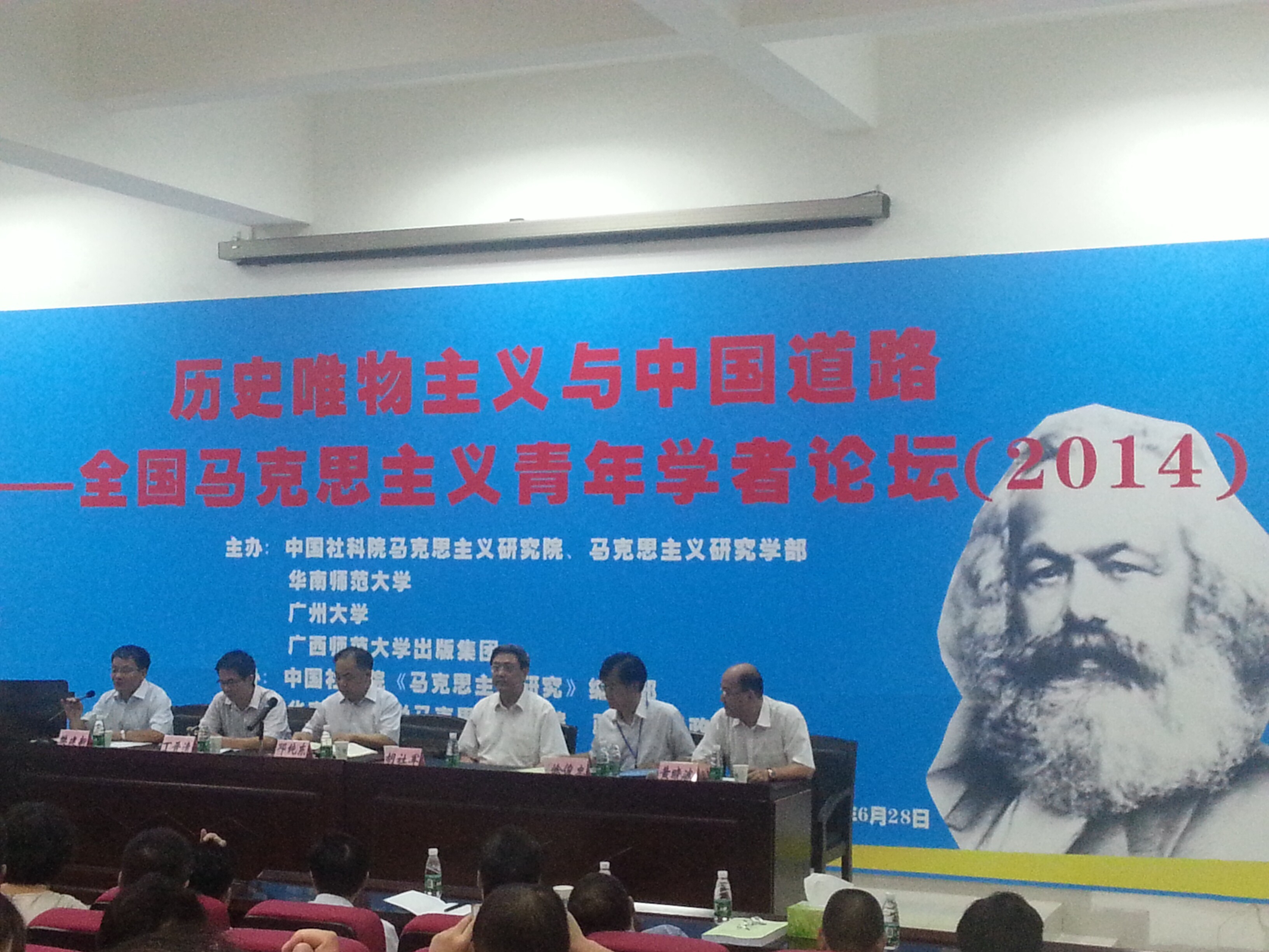共同承办的“全国马克思主义青年学者论坛(2014)”于6月28日在华南师范大学举行,本届论坛的主题是“历史唯物主义与中国道路”,来自中国社会科学院、中国人民大学、武汉大学、南开大学、南京大学、厦门大学、中山大学等50多所高校、研究机构的专家学者参加了本次论坛。此次论坛共收到参会论文140余篇,经专家评选后有54篇论文入选会议论文集。