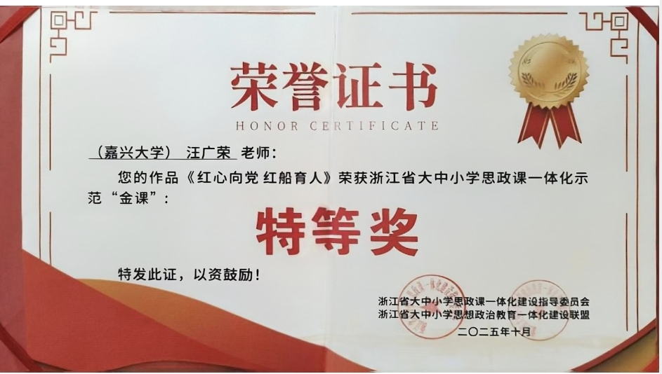 近日,浙江省“真理的味道”大中小学思政课一体化示范“金课”展示活动暨全国大中小学思政教育一体化学术研讨会在杭州举行,评选出“金课”特等奖4项、研讨会论文特等奖3项,我院课程、论文双双获得特等奖。其中大中小学思政课一体化课程“红心向党 红船育人”荣获浙江省“真理的味道”大中小学思政课一体化示范“金课”特等奖,论文《贯通·交互·协同:“真理的味道”大思政课品牌塑造路径研究》荣获全国大中小学思政教育一体化学术研讨会论文特等奖。