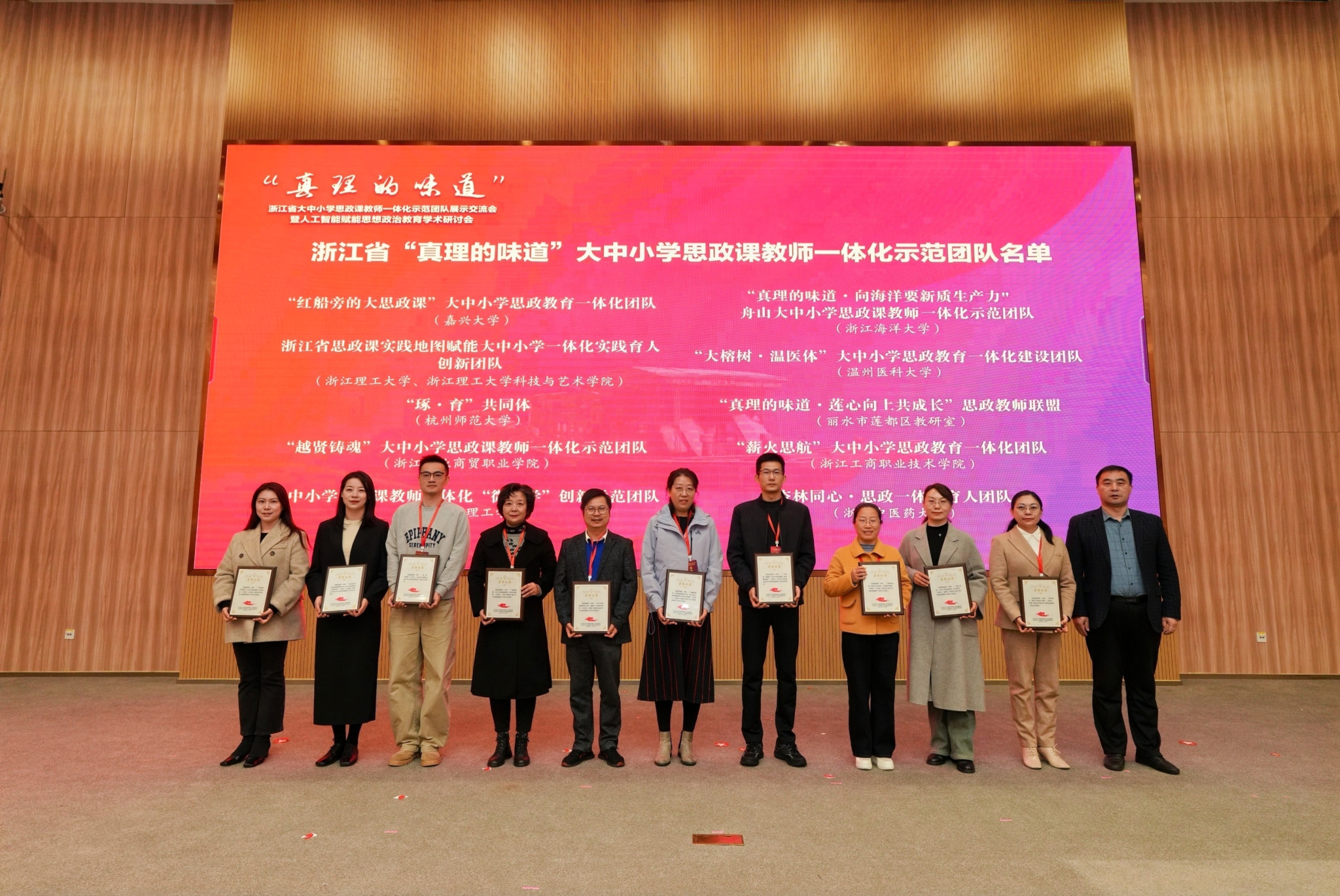 韩志言为2025年浙江省“新时代真理的味道”大中小学思政课教师一体化示范团队颁奖。