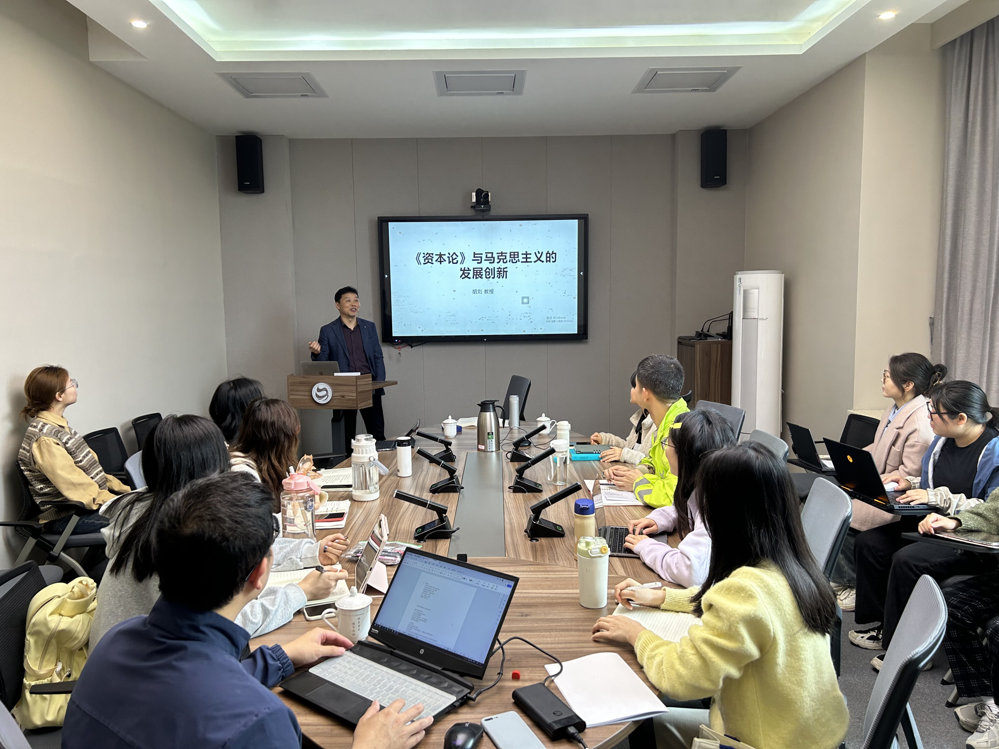 为研究生做题为《<资本论>与马克思主义的发展创新》系列讲座。学院2023级部分硕士研究生聆听讲座,马克思主义基本原理方向负责人康文龙教授主持讲座。