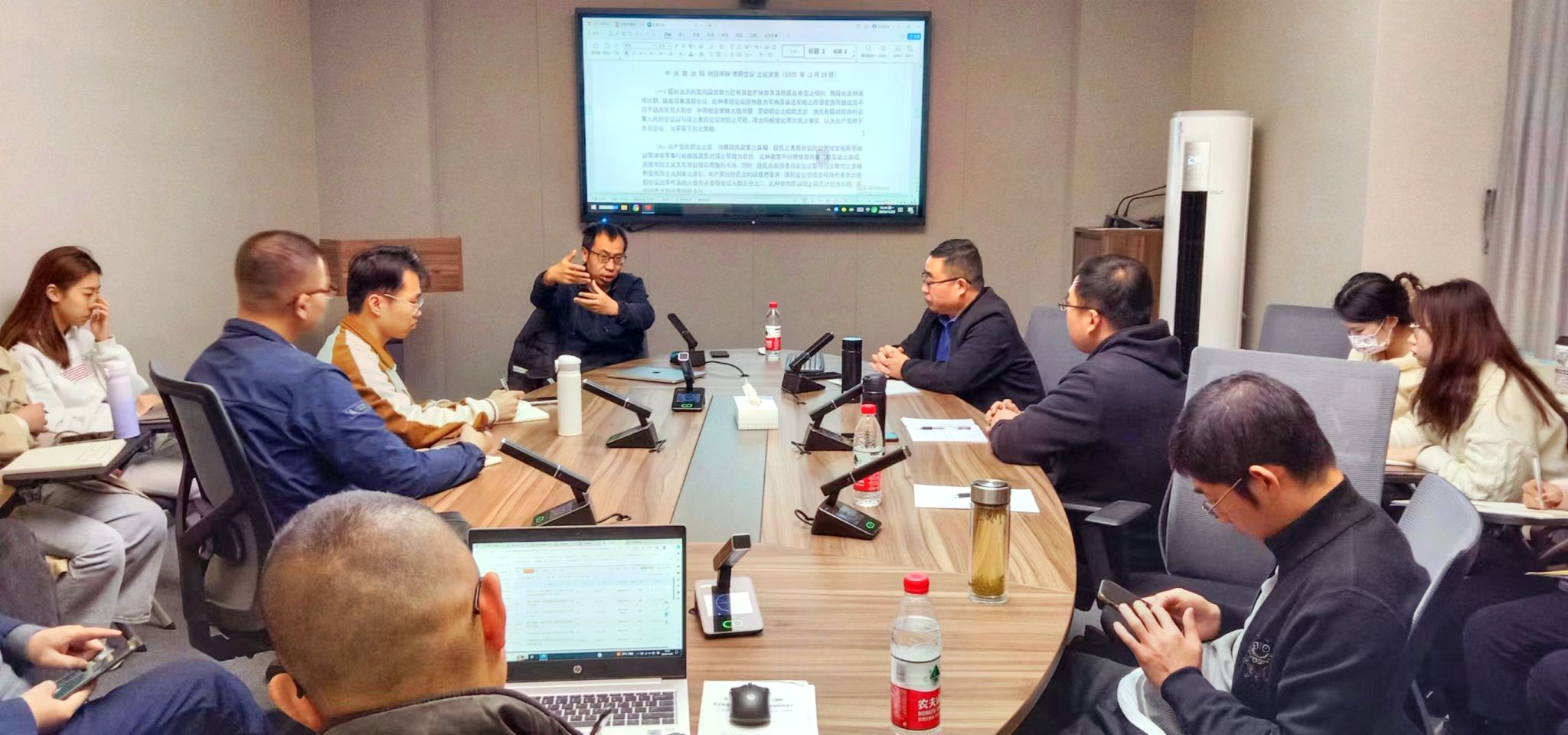 徐进首先指出教材与学术研究的区别、科研项目和研究论文的区别等问题,之后简要回顾了中共党史学界前辈研究的历程与方法,对不同时期代表性学者的治学方法进行了梳理,并特别强调应注重对不同方面的档案史料进行全方位关照和运用。徐教授进而利用案例指导研究生同学进行史料解读的训练,以《中央政治局对段祺瑞“善后会议”之议决案(1925-11-19)》、地形与作战问题(1946.1.10)两则史料为例,进行互动教学,提示学生如何发现史料中有价值的重要信息,使同学们对史料解读和分析方法有了更为深入的认知。报告会下半段是提问解答交流环节。现场师生与徐教授围绕史料分析与历史理论运用、唯物史观、党史著作的阅读方法等问题进行了深入的交流探讨。最后,高凡夫教授对徐进教授的学术报告进行了简要的点评和总结。