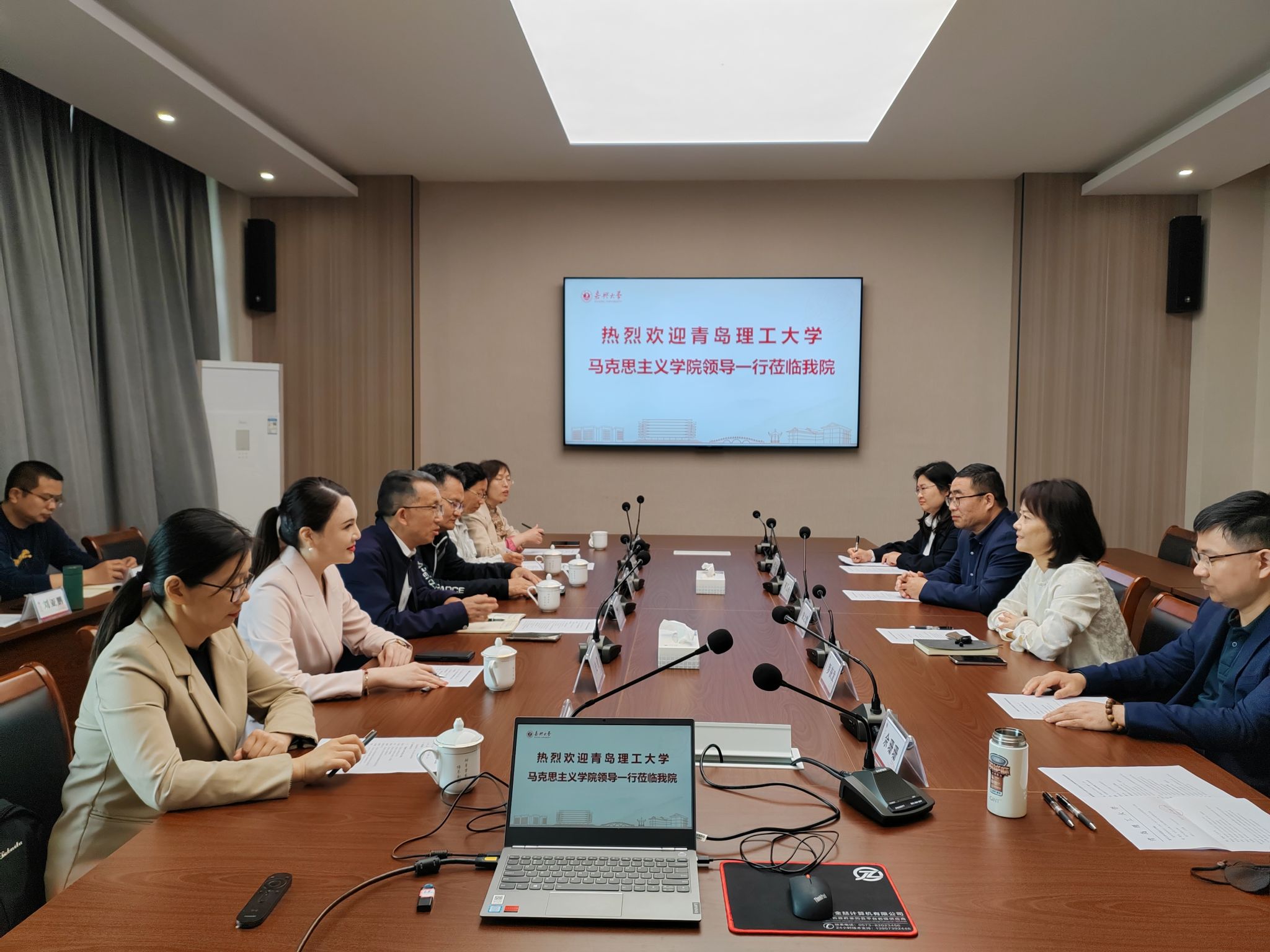 会上,双方介绍了学院的基本情况,并围绕大思政建设、红色文化融入思政课教学等内容进行深入交流与讨论。双方均表示在今后的工作中要进一步加强交流,互相学习,共同推动做爱自拍 发展取得新的进步。