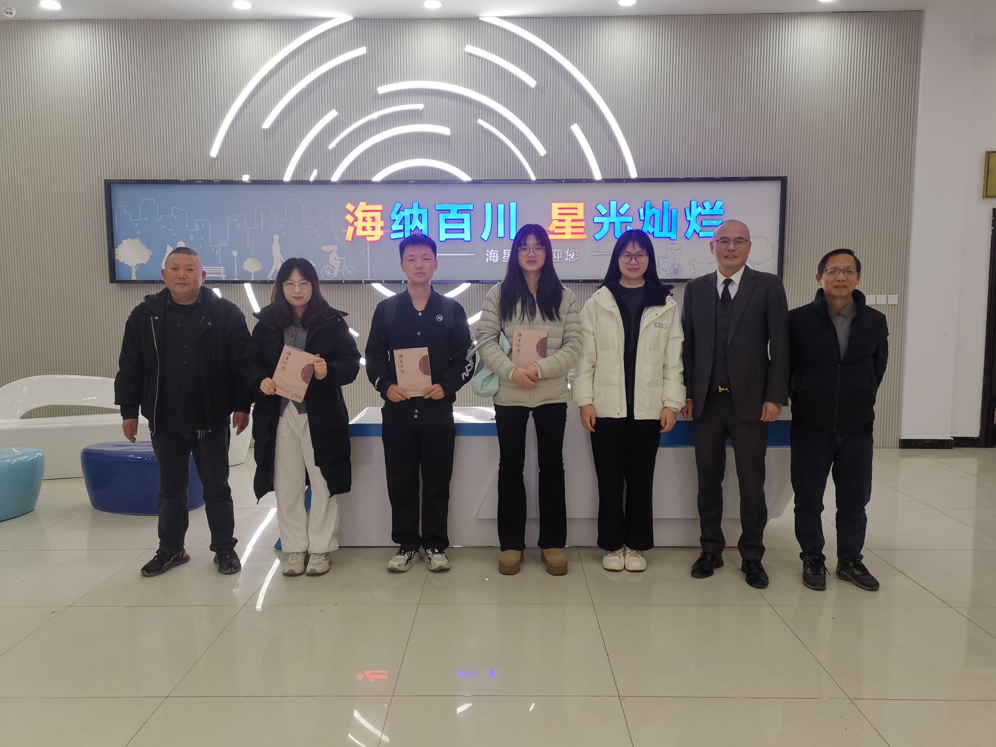 随后,师生一行抵达了铭龙控股集团有限公司调研,在工作人员的引导下,依次参观了企业的党群文化中心、职工书屋以及产品展示厅。该公司的产品从最初的经编面料,发展成为全球产业用网布生产领军企业,业务遍布全球40余个国家和地区,是桐乡市一家大型民营企业,也是屠甸镇的龙头企业。